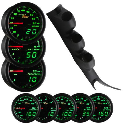 FeaturesMaxTow Double Vision® Series Gauges are 2 1/16th Inch (52mm) in Size and Feature a Black Gauge Face with Magnified Clear LensIncludes Electronically Driven 1500 EGT, 60 PSI Boost, and 30 PSI Fuel Pressure GaugesFull Size Black Vehicle Specific Triple Pillar Pod Holds Three 52mm Gauges and is made from ABS PlasticPackage Includes all Necessary Sensors, Wire Harnesses, and Installation Hardware for Gauges and PodOne Year Limited Warranty and Free Lifetime Technical Support MaxTow 00-06 Chevy Silverado Duramax Diesel Gauge Package Black Face Boost, EGT & Fuel Pressure?